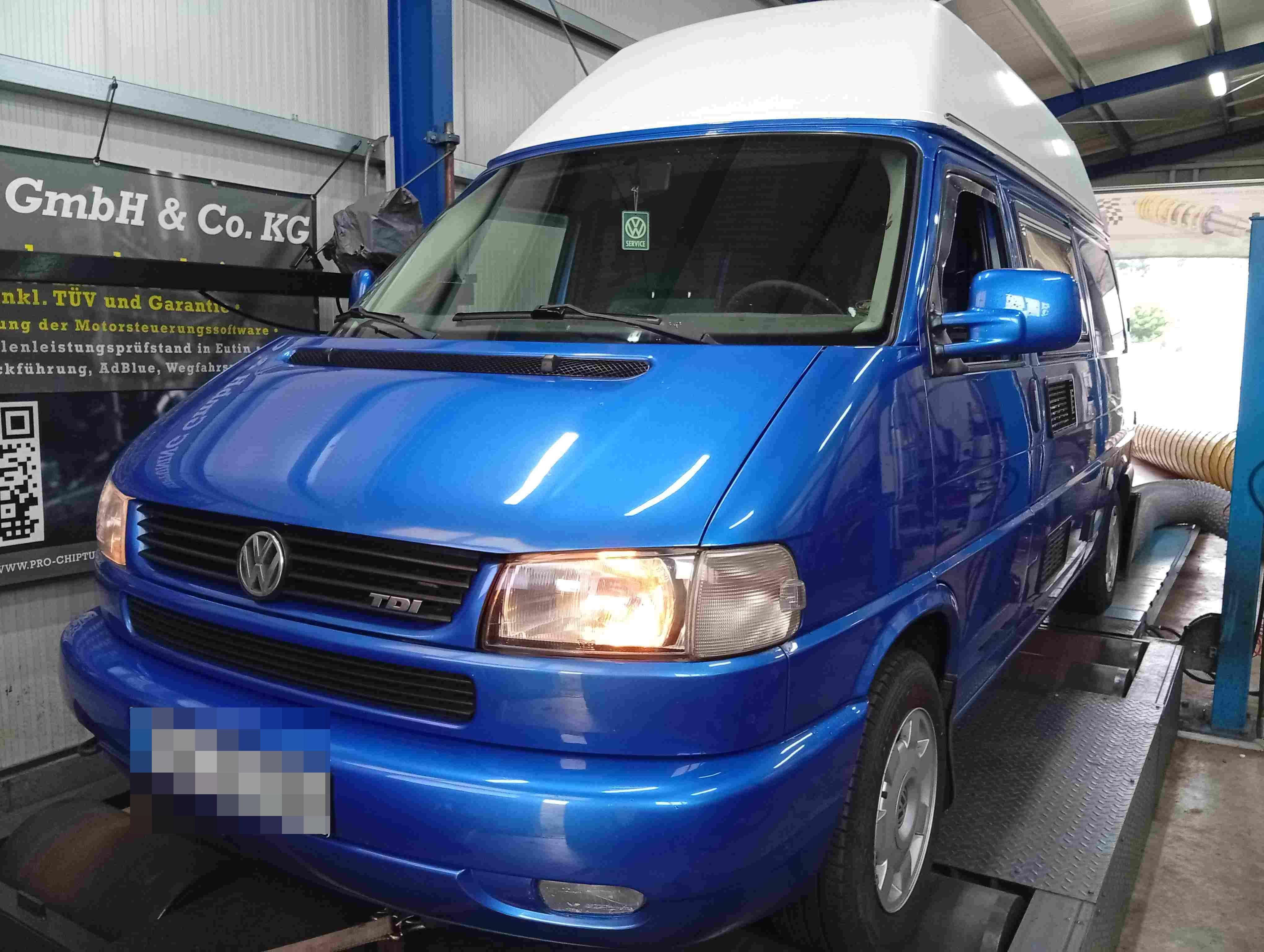 Leistungssteigerung für diesen VW T4 - 2,5TDI (Baujahr 2001). Der - Motor leistet 88 PS (190 NM Drehmoment) im Serienzustand / Werksangabe. Da geht natürlich noch etwas mehr!