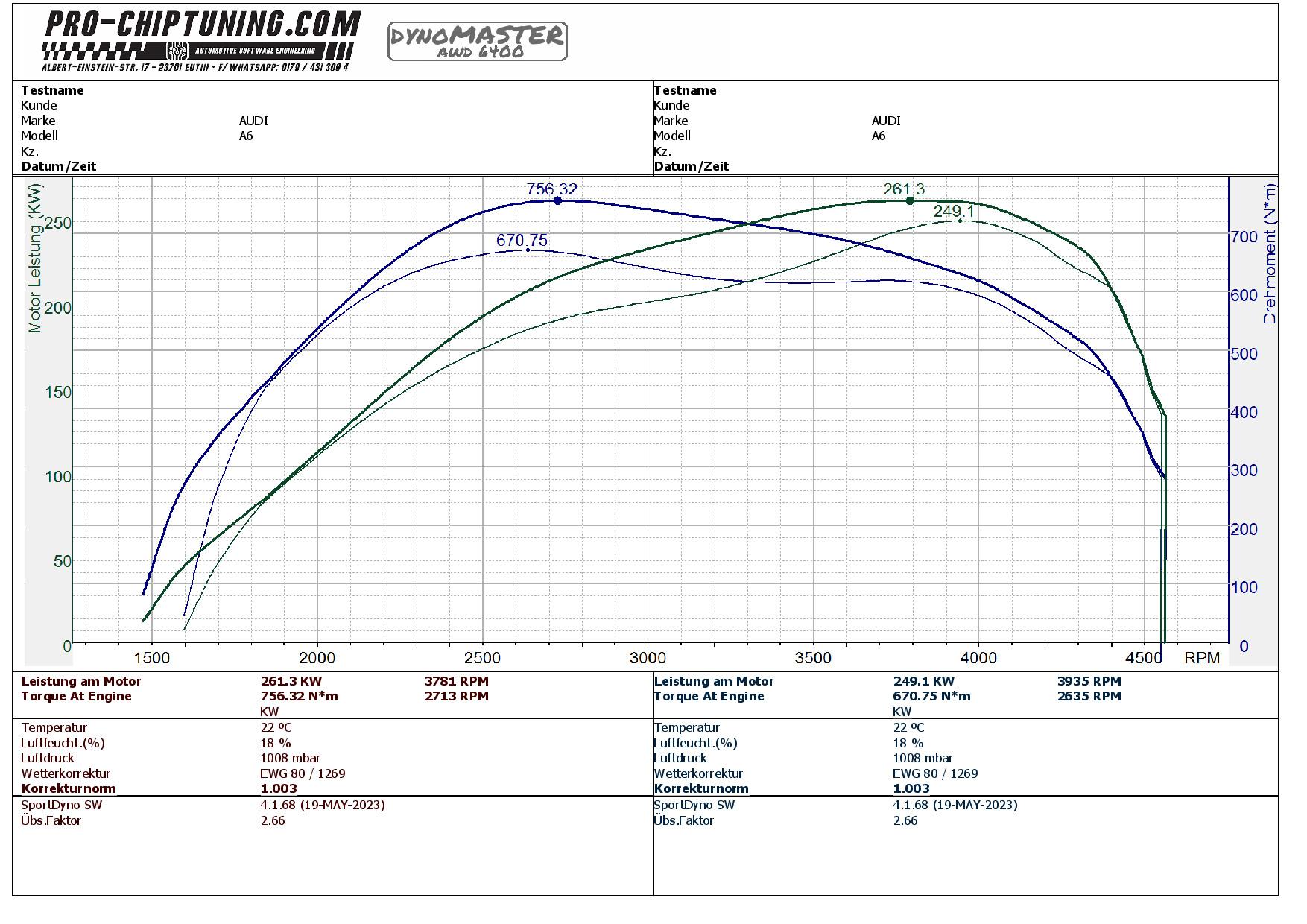 - Fremdtuning: 249,1kW (338PS) @ 3935RPM / 670NM @ 2935RPM
