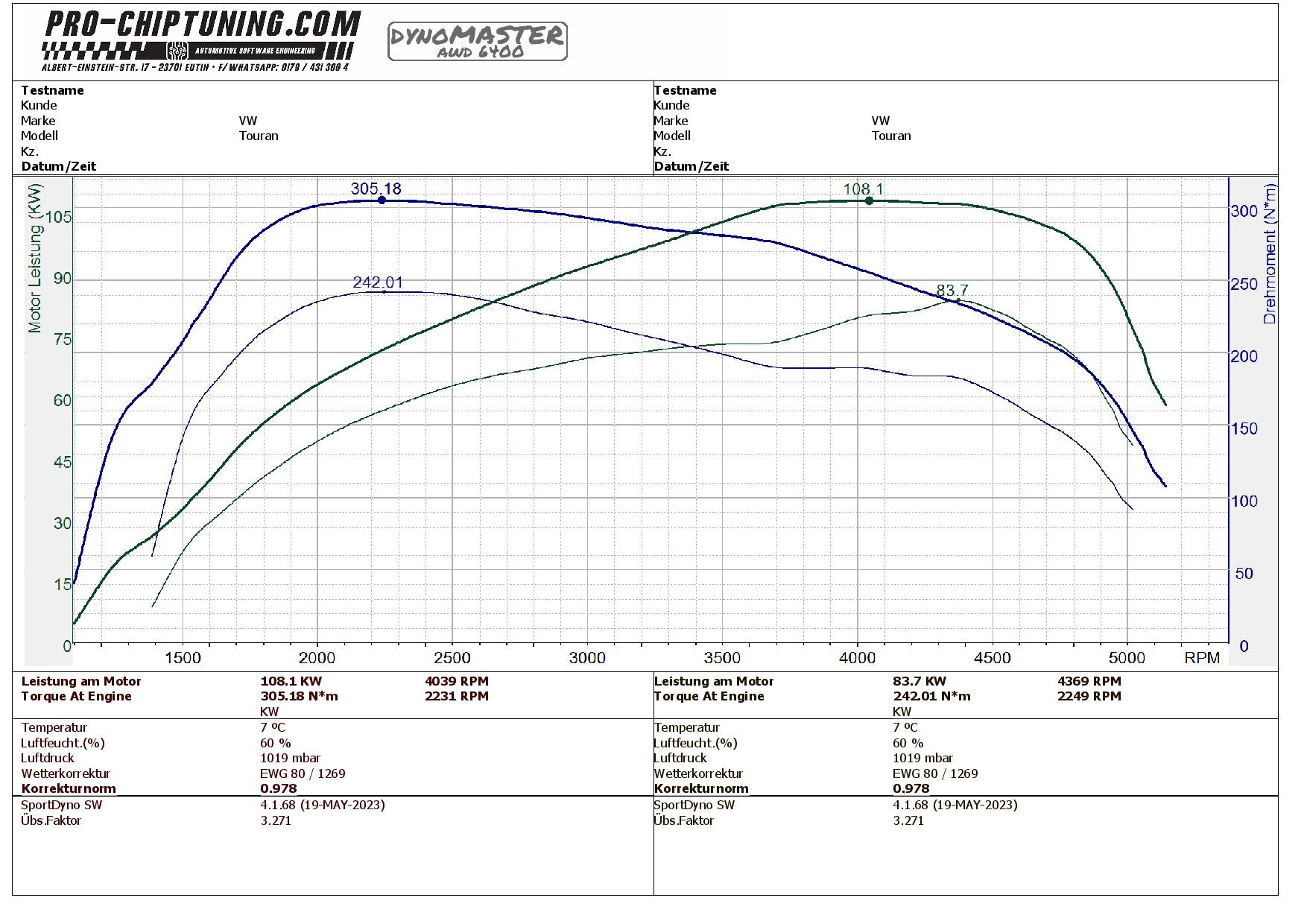 Leistungssteigerung VW Touran mit dem 1,6L EURO5 Dieselmotor. Von 114 auf 147PS und gute 60Nm mehr Drehmoment!