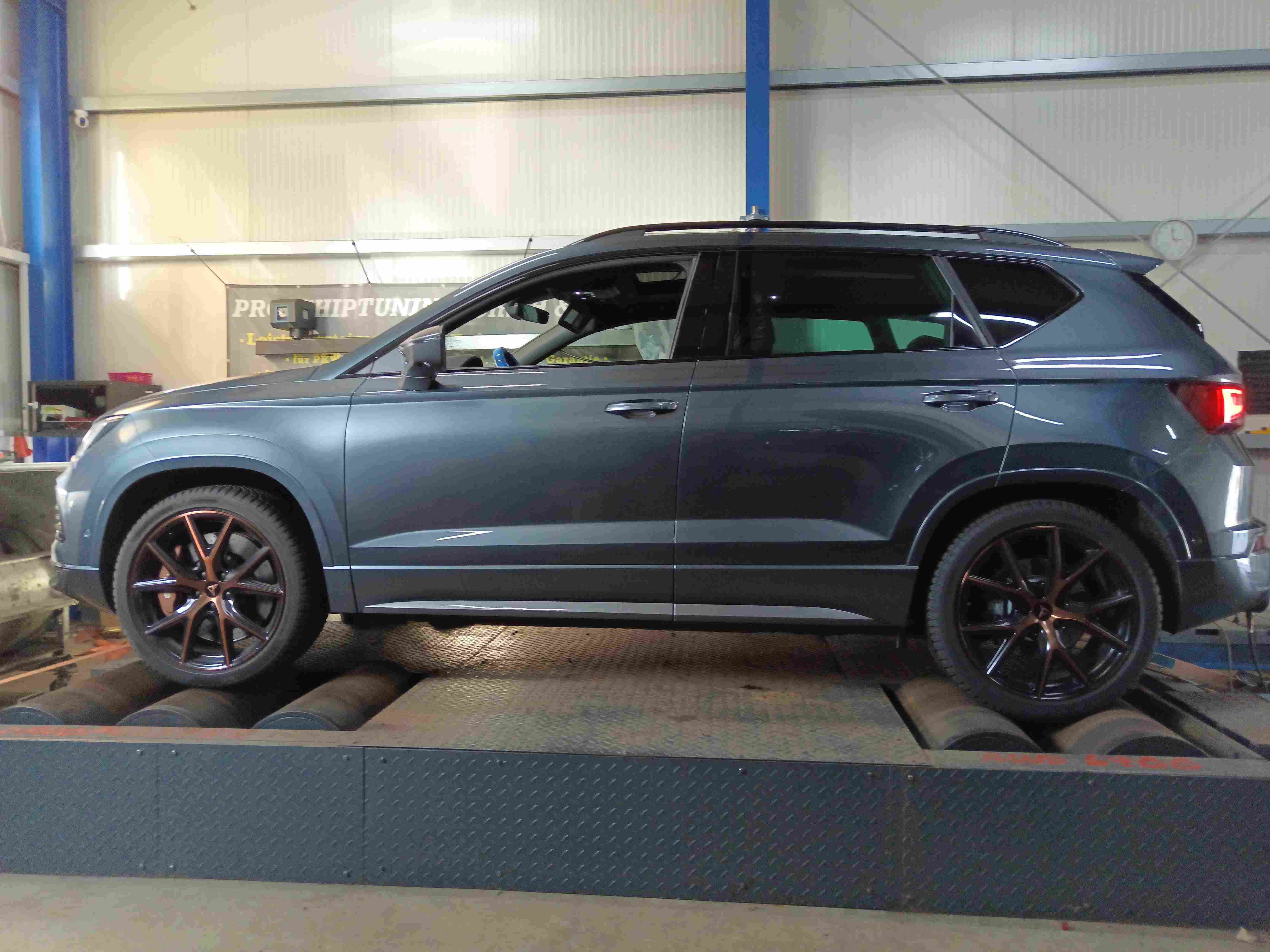 Dieser Ateca befand sich hardwareseitig noch im Serienzustand. Wir haben eine Softwareanpassung zur Leistungssteigerung am Prüfstand durchgeführt und natürlich auch unsere bewährte DSG-Anpassung aufgespielt.