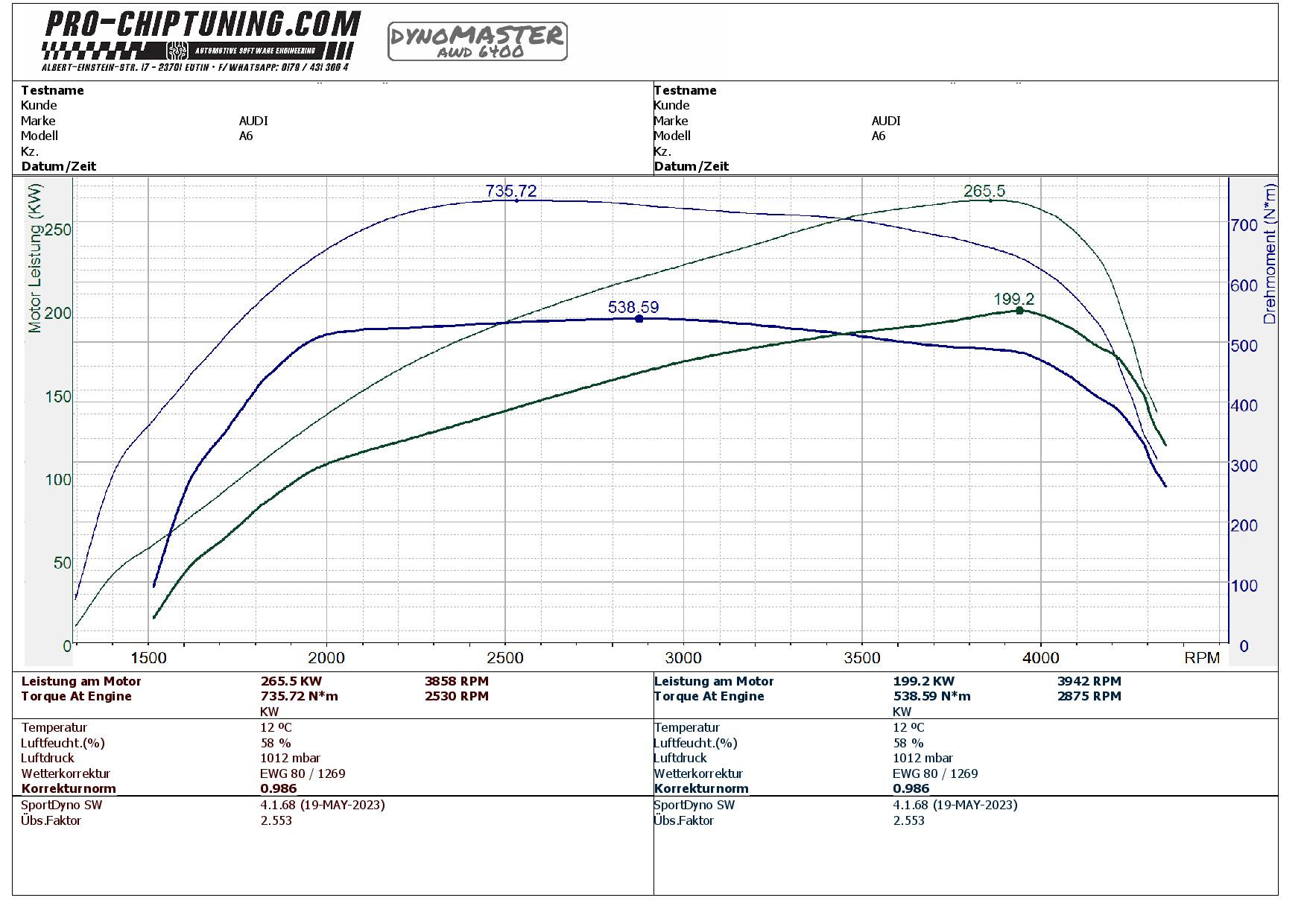 Leistungssteigerung Audi A6 Mildhybrid von 231PS auf 361PS und von 500Nm auf 735Nm Drehmoment!