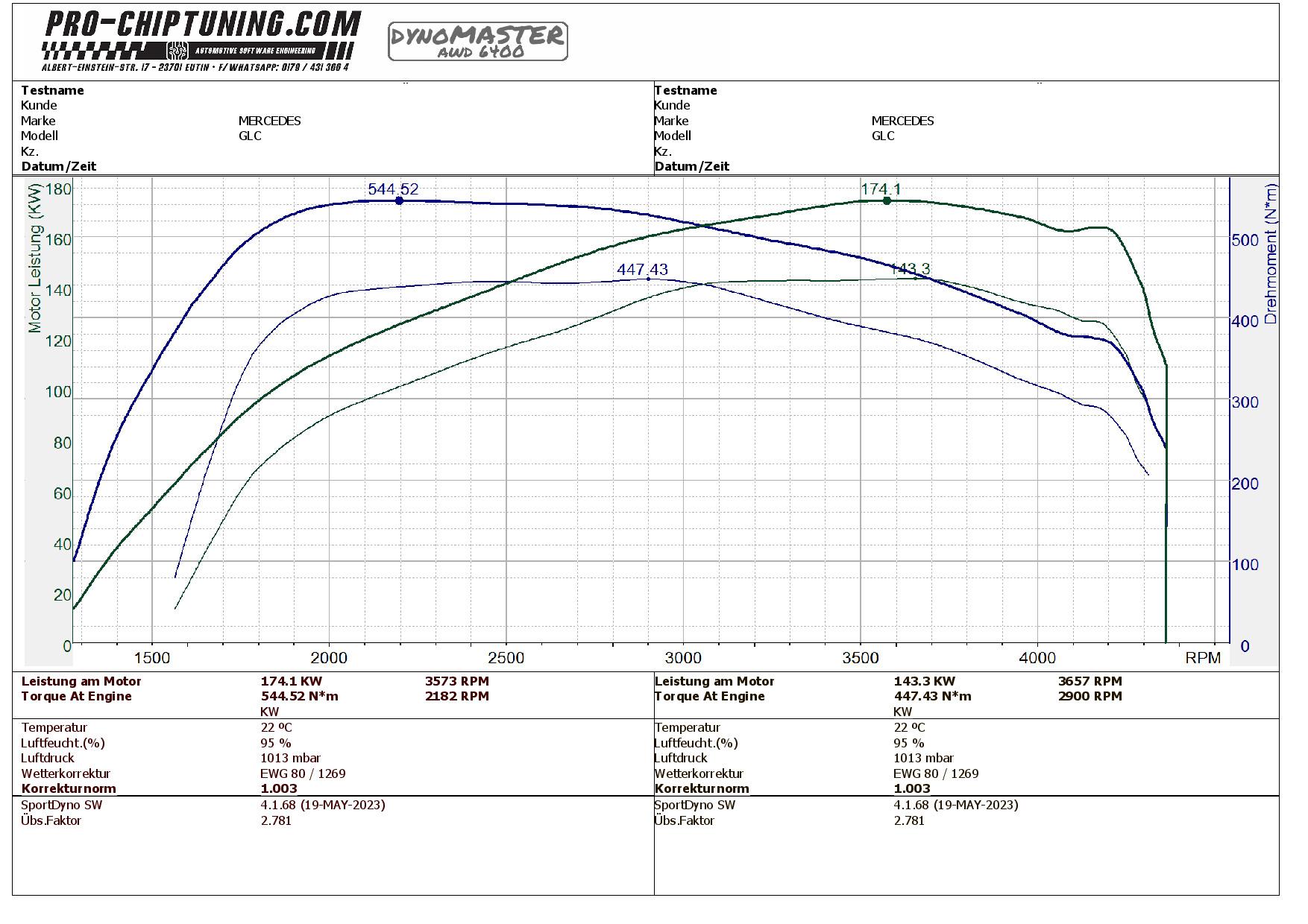 Leistungssteigerung für diesen MB GLC X253 - 220 D (Baujahr 2017). Der - Motor leistet 170 PS (400 NM Drehmoment) im Serienzustand / Werksangabe. Bekanntermaßen streuen die Motoren schon immer weit nach oben. Auch bei diesem GLC konnten wir in der Eingangsmessung bereits 195PS und fast 450Nm Drehmoment messen.