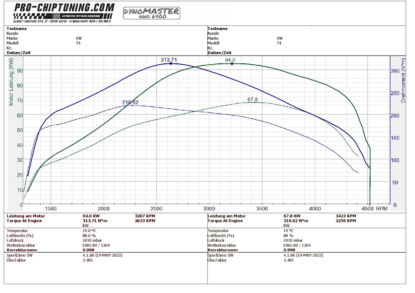 Leistungssteigerung für diesen VW T4 - 2,5TDI (Baujahr 2001). Der - Motor leistet 88 PS (190 NM Drehmoment) im Serienzustand / Werksangabe. Da geht natürlich noch etwas mehr!
