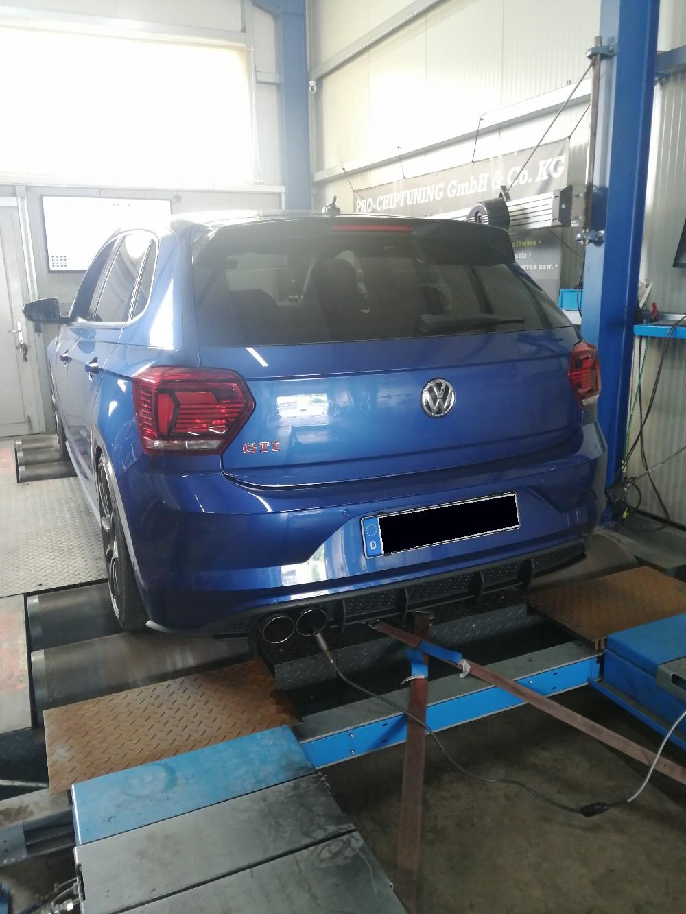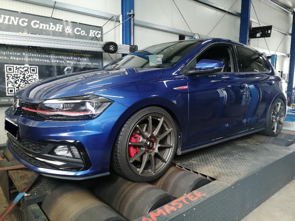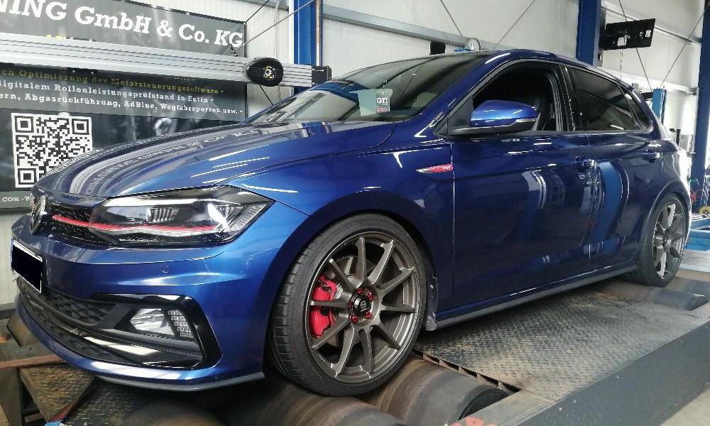 Leistungssteigerung durch Hardware und Softwareänderung bei uns auf dem Allradrollenleistungsprüfstand: Dieser schöne 2020er Polo GTI (DKZ-Motor mit OPF) hat eine Milltek Abgasanlage, HJS Downpipe, Turboinlet und einen Wagner-Ladeluftkühler verbaut. Bei uns natürlich alles #tunestreetlegal inkl. TÜV-Eintragung von Hard- und Software!