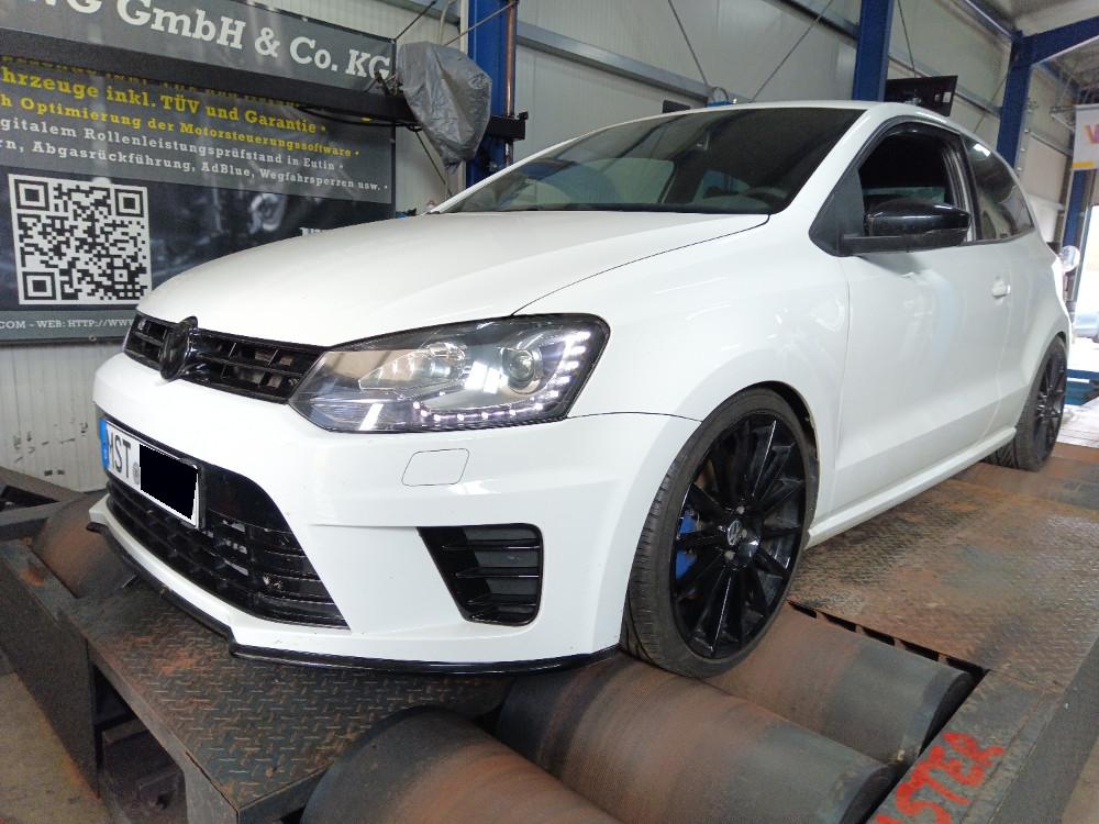 Der Polo hat hardwareseitig einen HG Ladeluftkühler, HG-Downpipe, HG-Ansaugung und eine Bastuck Abgasanlage bekommen.