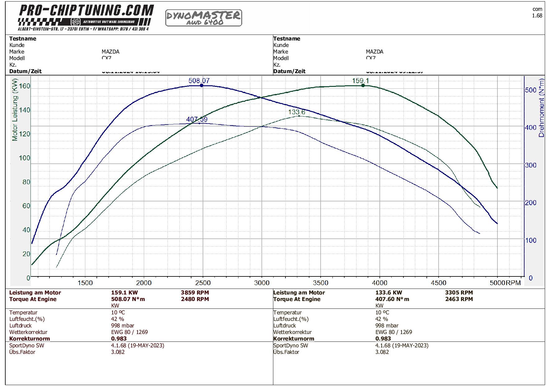 Leistungssteigerung Mazda CX-7 bei uns auf dem Leistungsprüfstand. Über 500Nm Drehmoment sorgen für einen angenehmen Vortrieb!