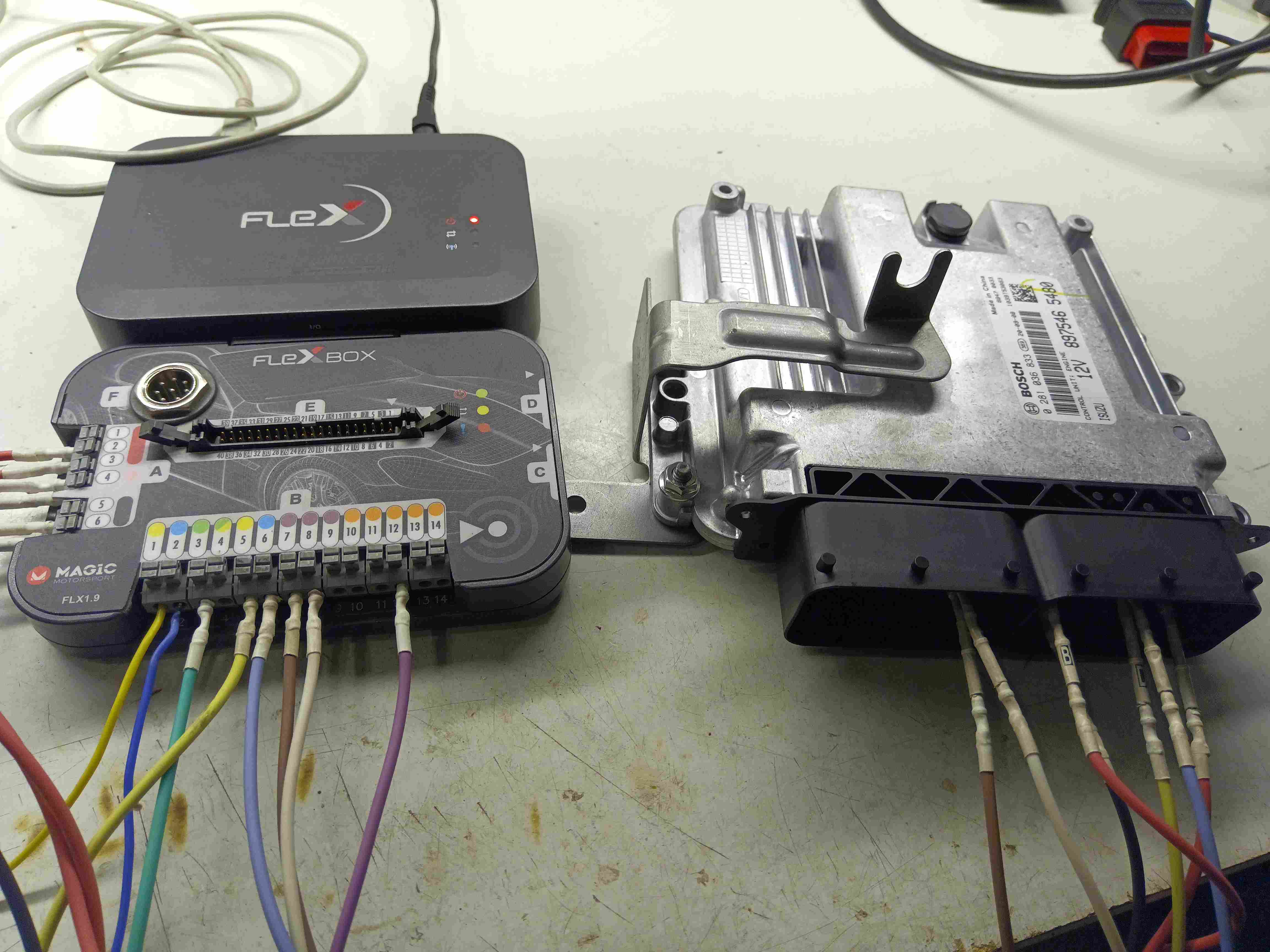 Das verbaute Bosch EDC17C83 Motorsteuergerät, musste für die Optimierung ausgebaut und im "Benchmodus" programmiert werden.