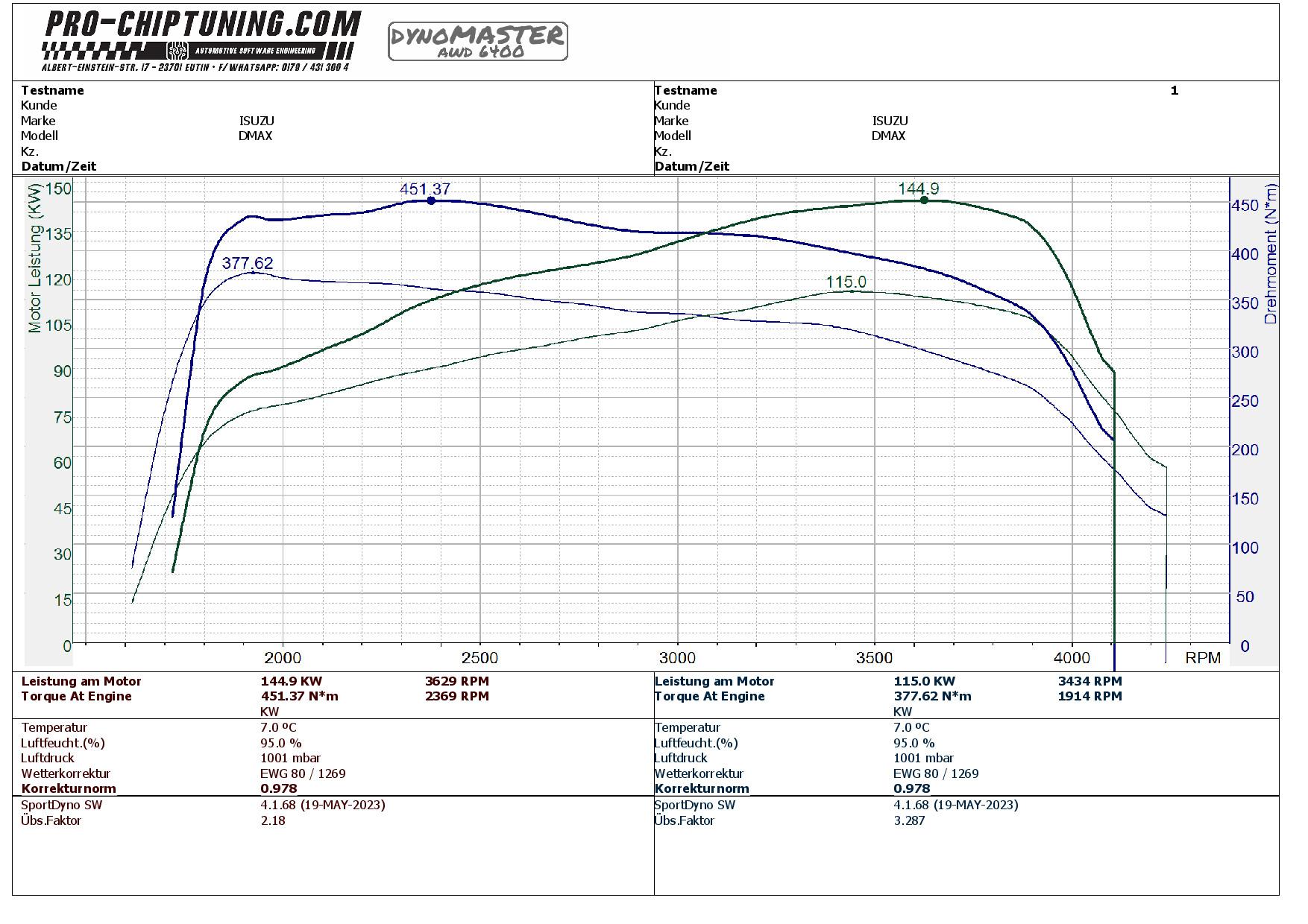 Leistungssteigerung Isuzu D-Max 1.9D 163PS durch unsere professionelle Softwareanpassung am Prüfstand