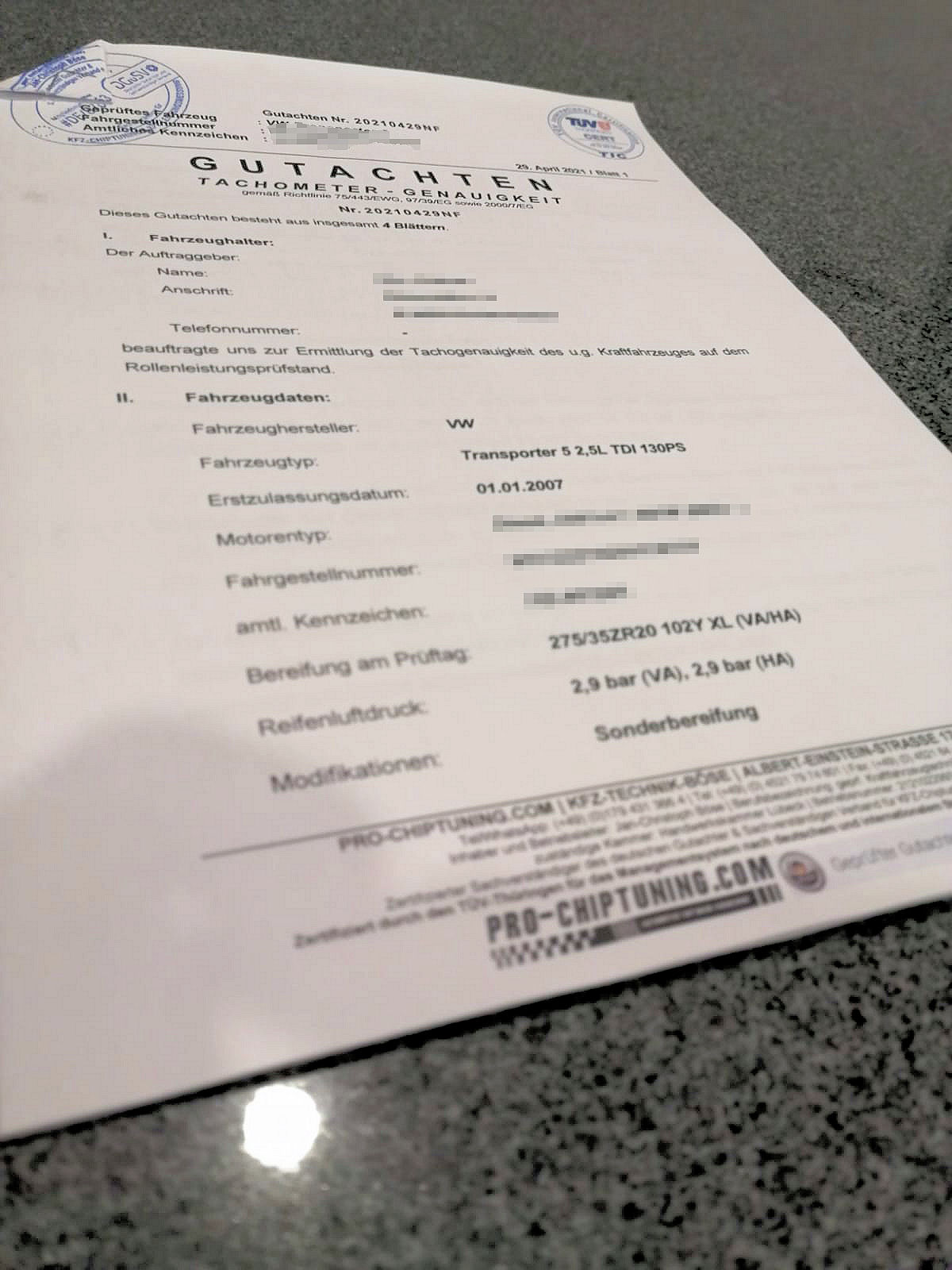 Zertifizierte Tachoprüfung, -begutachtung und -justierung zur TÜV-Abnahme einer Sonderbereifung