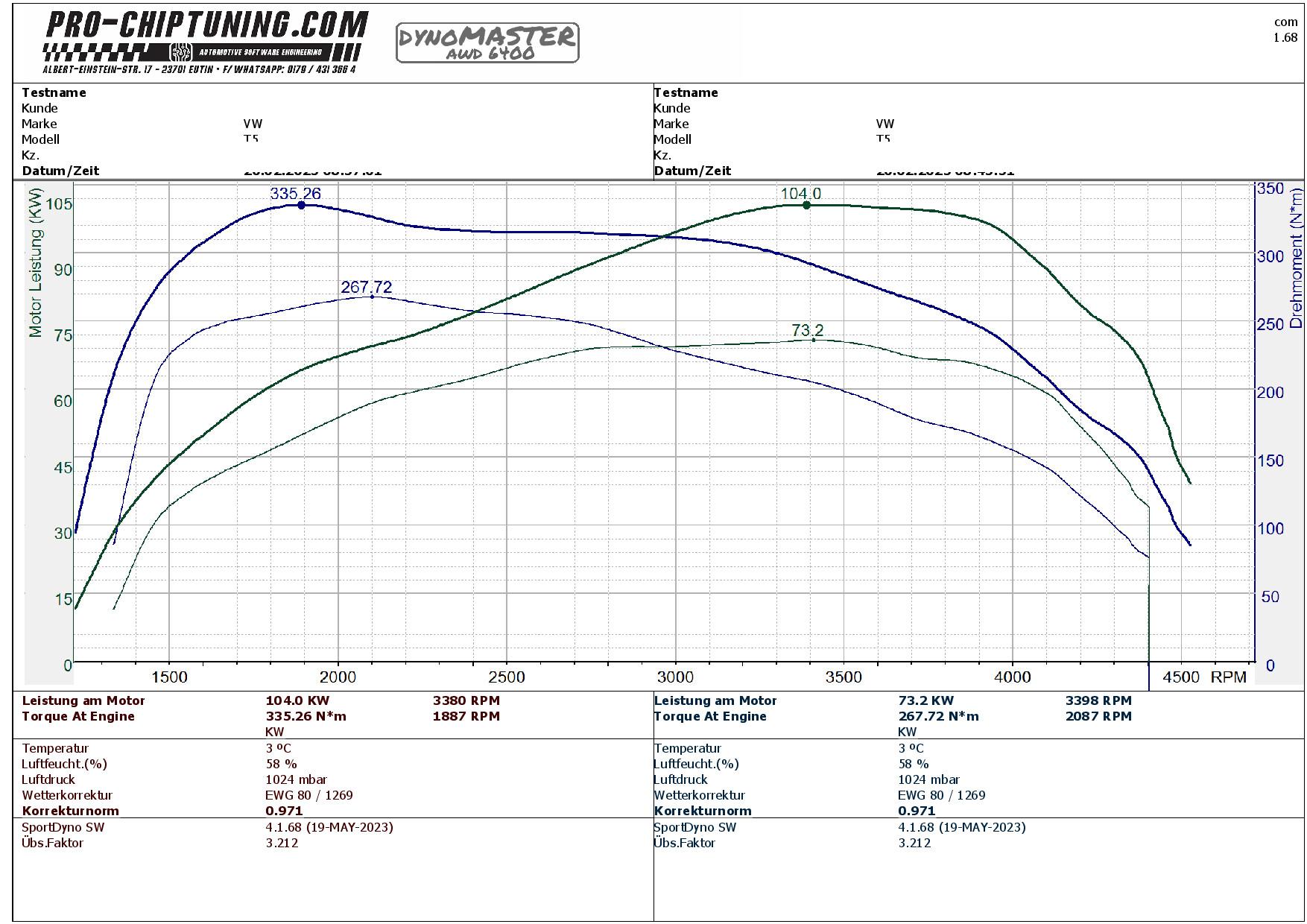 Leistungssteigerung für diesen VW Transporter 5 - 2.0 TDI CR DPF (Baujahr 2010). Der CAAB - Motor leistet 102 PS Serienzustand / Werksangabe. Das Fahrzeug hat bereits das 23M4 Zwangsupdate bekommen. Auch hier können wir Abhilfe schaffen!