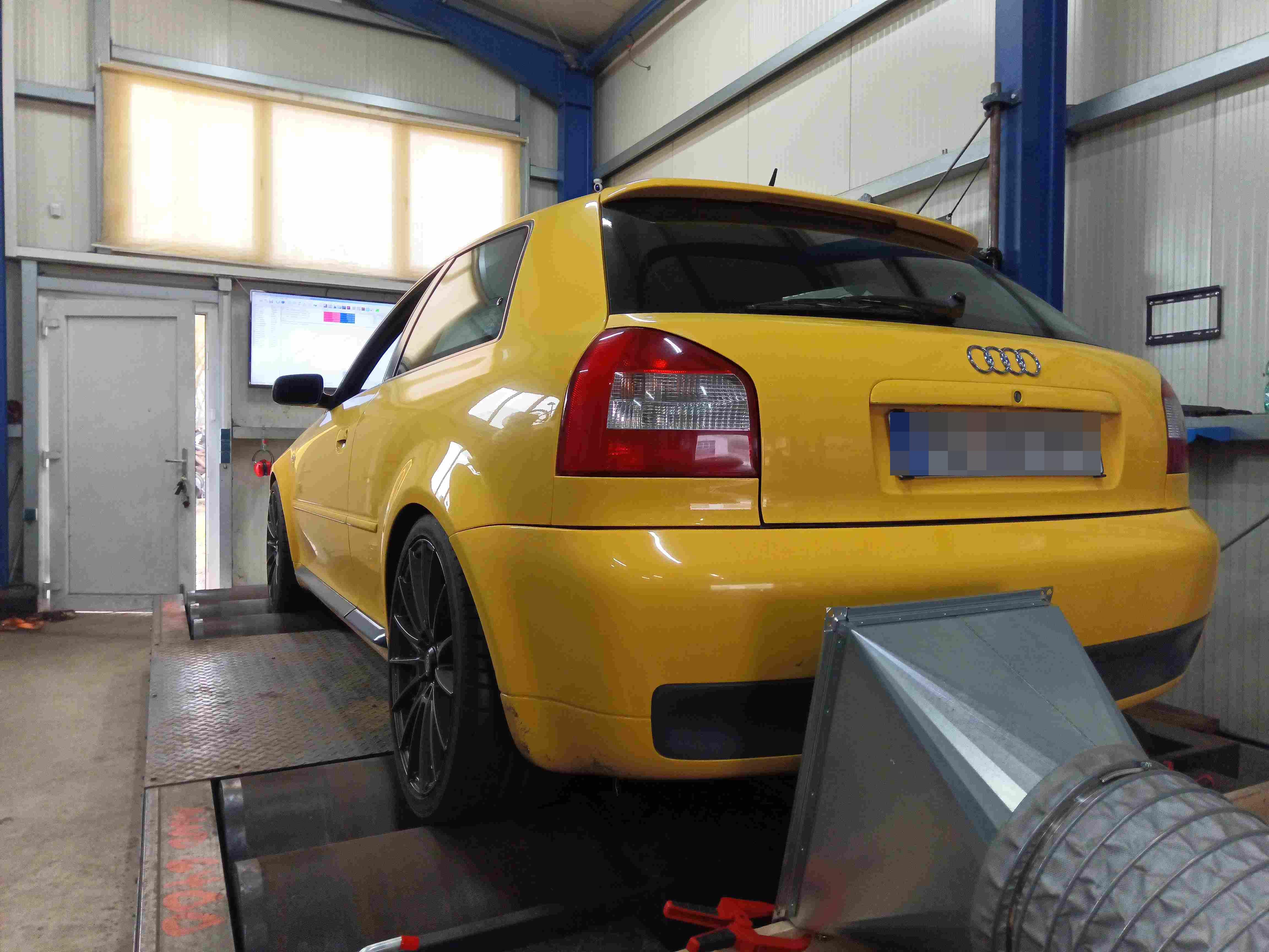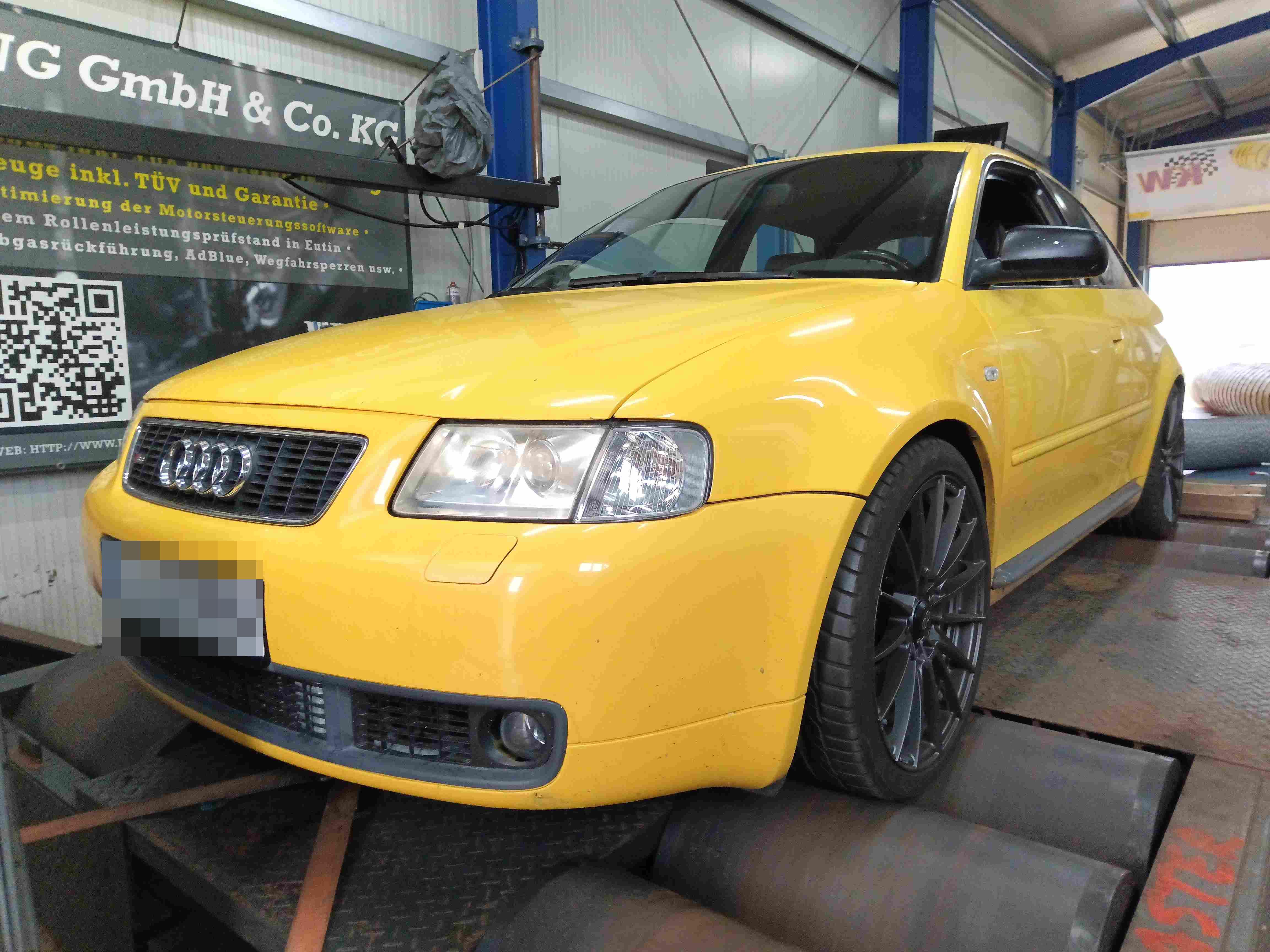 Leistungssteigerung für diesen Audi S3 8L .8T 20V (Baujahr 2000). Der APY - Motor leistet 210 PS (270NM Drehmoment) im Serienzustand / Werksangabe.