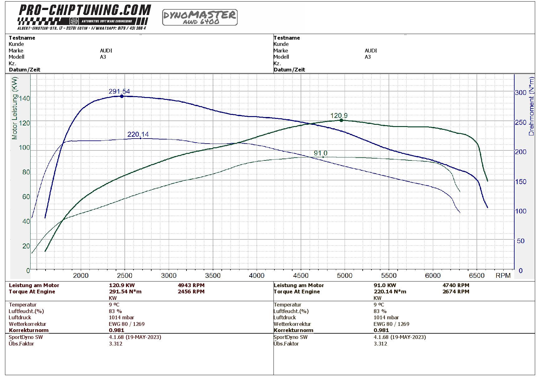 Leistungssteigerung Audi A3 1,4L TFSI mit 122PS Serienleistung auf 164PS und fast 300Nm Drehmoment!