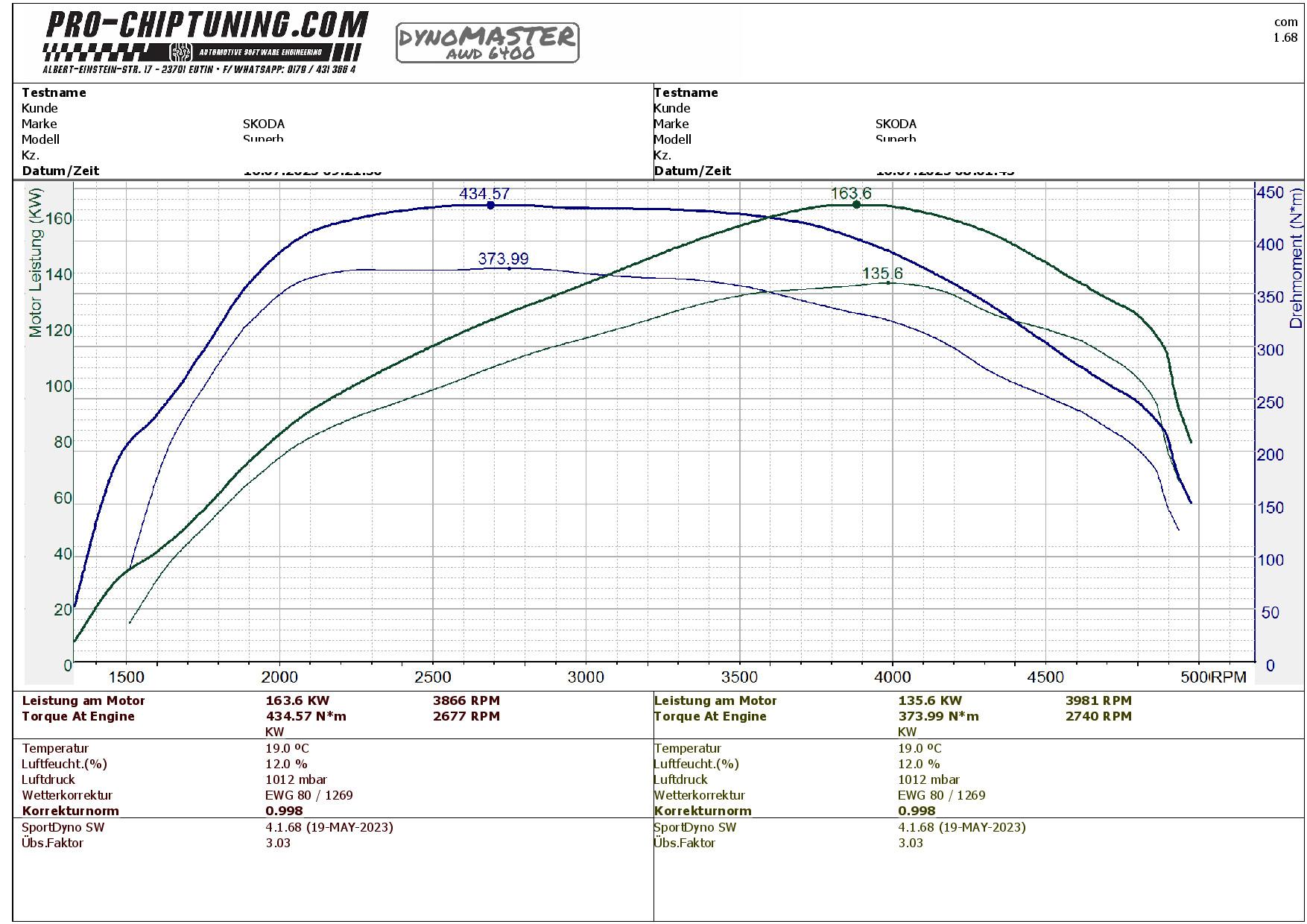 Leistungssteigerung Skoda Superb auf 222PS / 434Nm inkl. Begrenzung des maximalen Drehmoments (Schaltwagen)