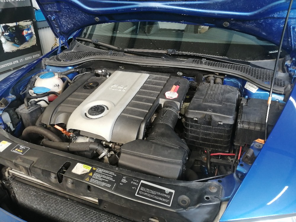Turboladerumbau auf K04, Injektoren hat der Wagen vom S3 bekommen. Desweiteren wurde ein Forge-Ladeluftkühler verbaut. Abgasanlage