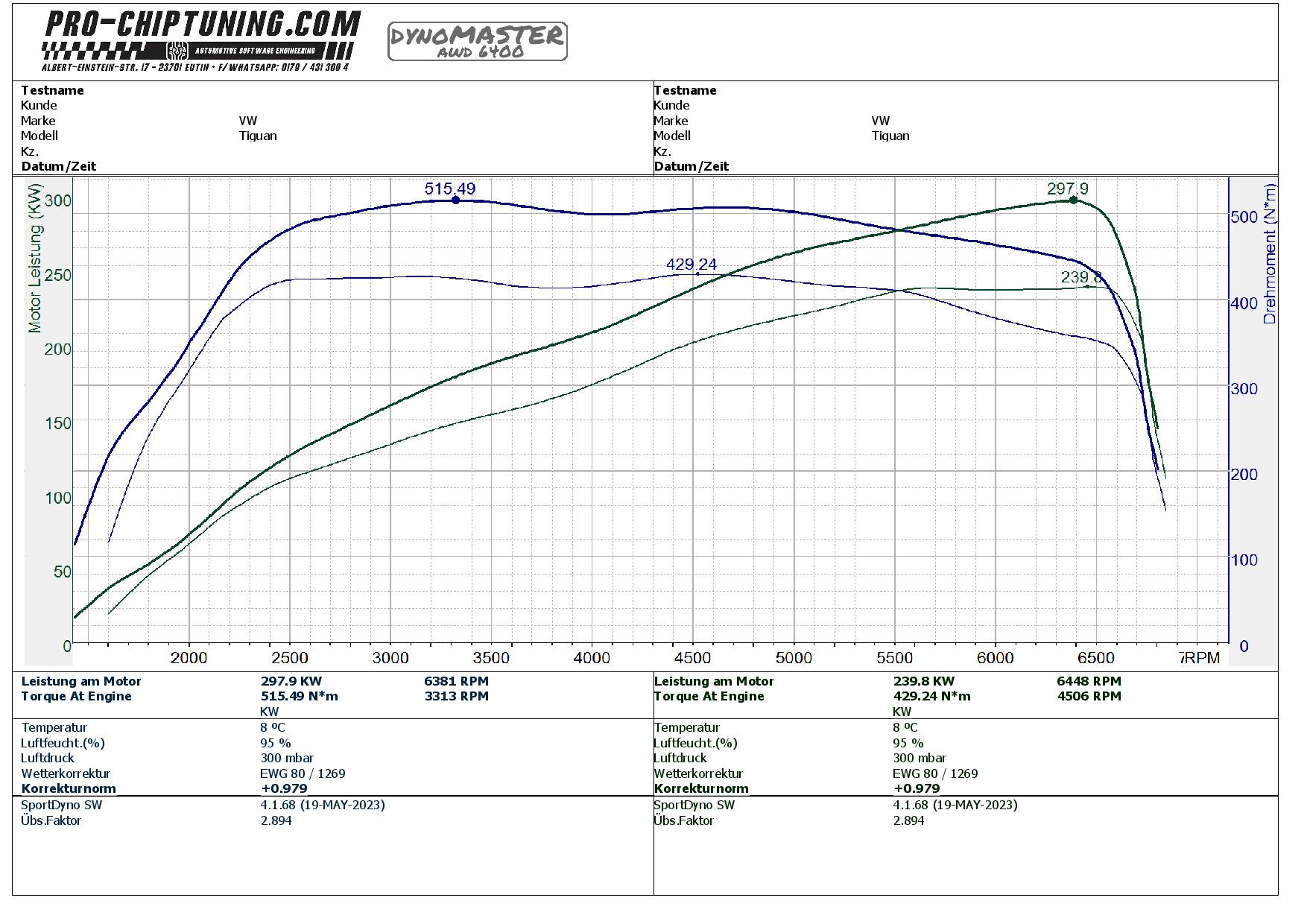 Heute gab es direkt einen VW Tiguan 2.0 TSI R (Baujahr 2021). Der DNF-Motor leistet 320 PS ( 420 NM Drehmoment) im Serienzustand / Werksangabe.