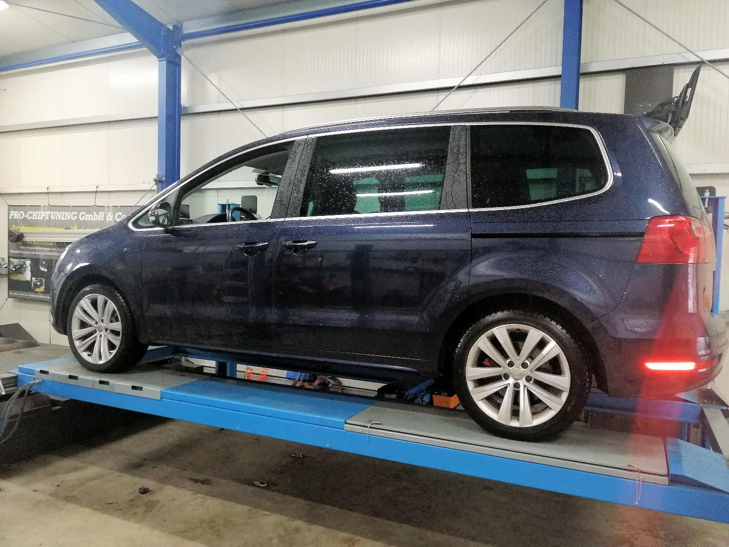 Manchmal muss es etwas mehr sein. Dieser Seat Alhambra 2L TDI (mit Leistungssteigerung) ist von Werk aus mit der 312mm Bremsanlage ausgerüstet (ähnlich wie Golf 7 GTI ohne Performance), die für das große Fahrzeug doch etwas schwach auf der Brust ist. Der Kunde suchte nun nach einer einfachen und günstigen Lösung und hat sie gefunden: Die 340mm Cupra-Bremsanlage aus dem Seatregal (ähnlich der Golf 7R Bremsanlage). Wir haben für den Kunden die Eintragung durch den TÜV-Nord bei uns im Hause vorgenommen.