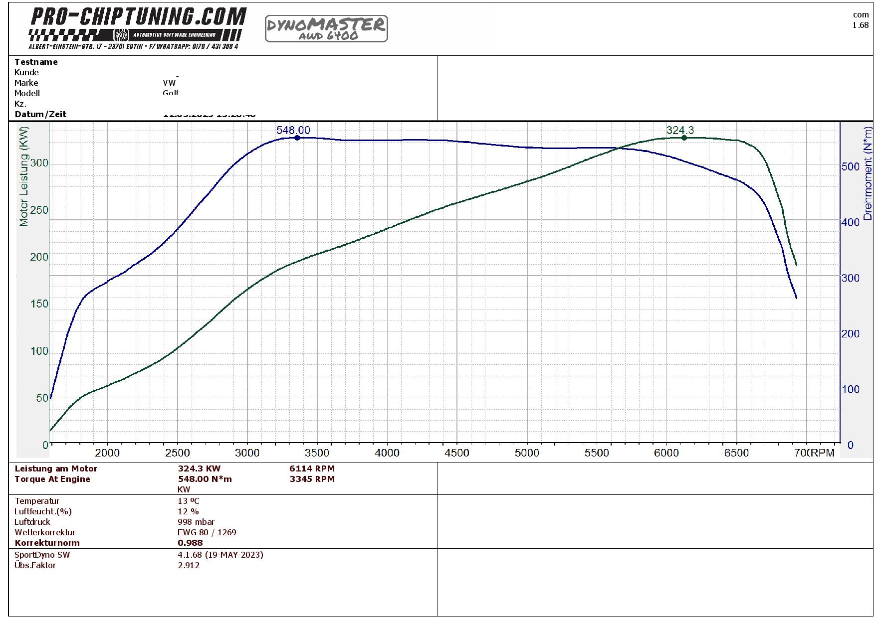 Das Fahrzeug hat von uns einen umfangreichen Umbau bekommen. Hardwareseitig gab es neben einem TM450 Upgradelader: HJS-Downpipe, Milltek Klappenabgasanlage, offene Ansaugung, Wagner Ladeluftkühler und unser Turboinlet. Die Abstimmung erfolgte bei uns am Prüfstand auf knapp 1,8 Bar Ladedruck obenraus, untenrum auf 1,6 Bar Ladedruck begrenzt. Die Drehmomentkurve ist dadurch fast wie mit nem Lineal gezeichnet :).